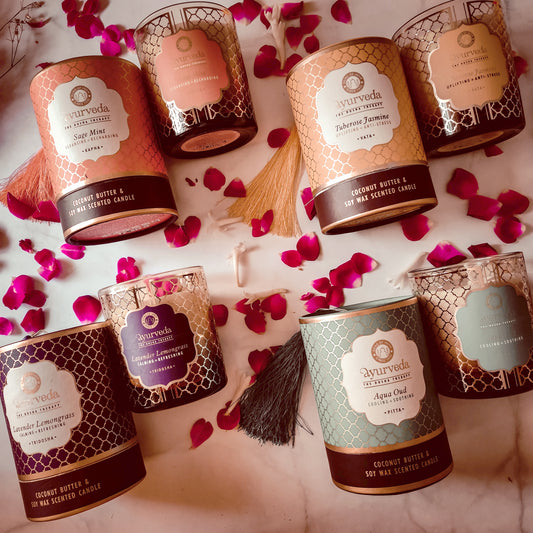 Set de Velas Aromáticas Ayurveda 100 g – Caja de Regalo (3 Unidades)