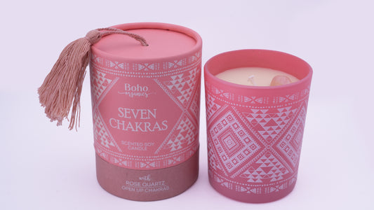 Vela Aromática Orgánica Boho 120 g con Piedras Energéticas
