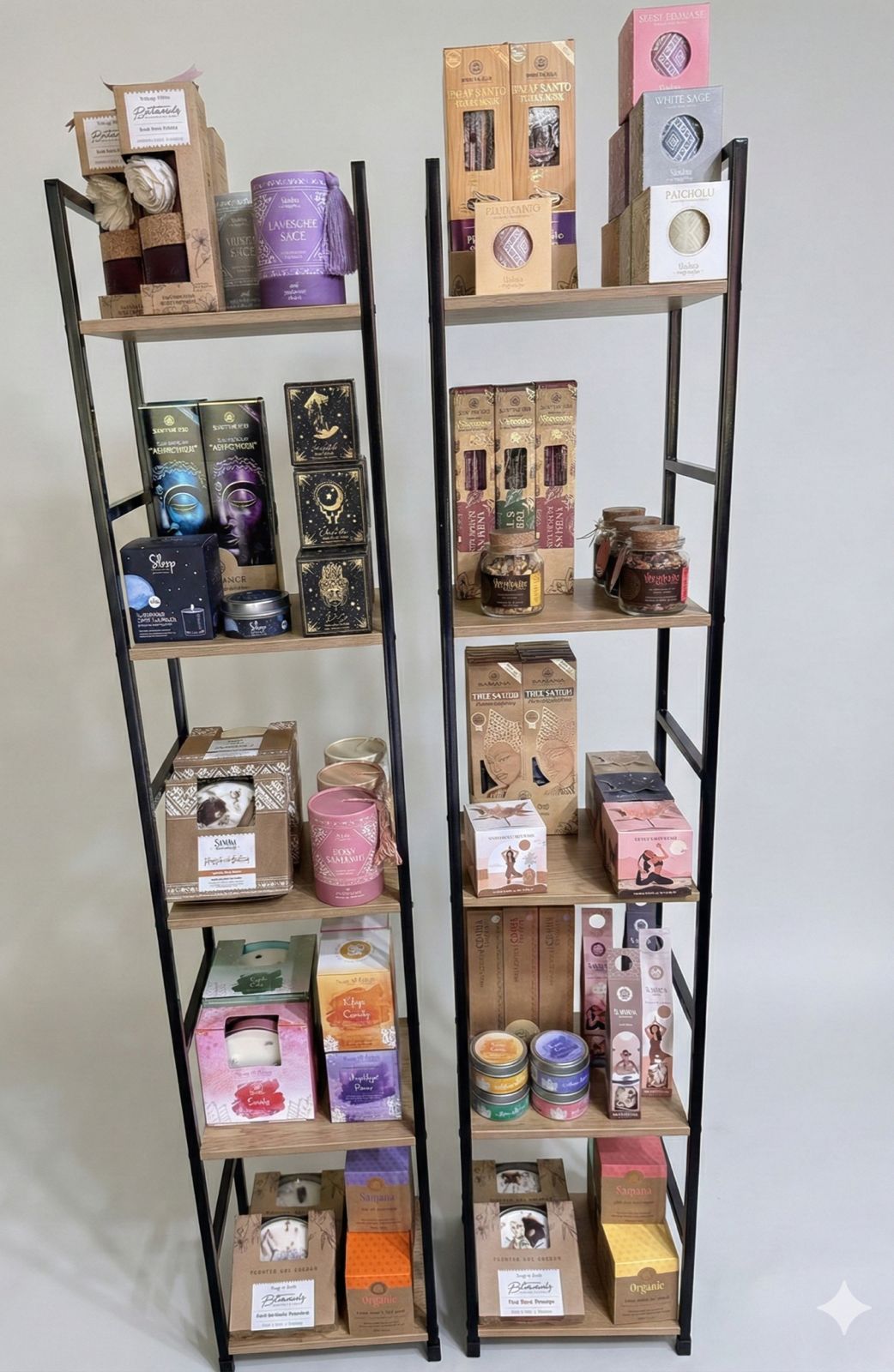 Hemos diseñado 3 niveles de surtido con nuestros "Best Sellers" (Velas de Soja con Cristales, Inciensos Botánicos, Difusores y Sahumerios), listos para venderse solos.