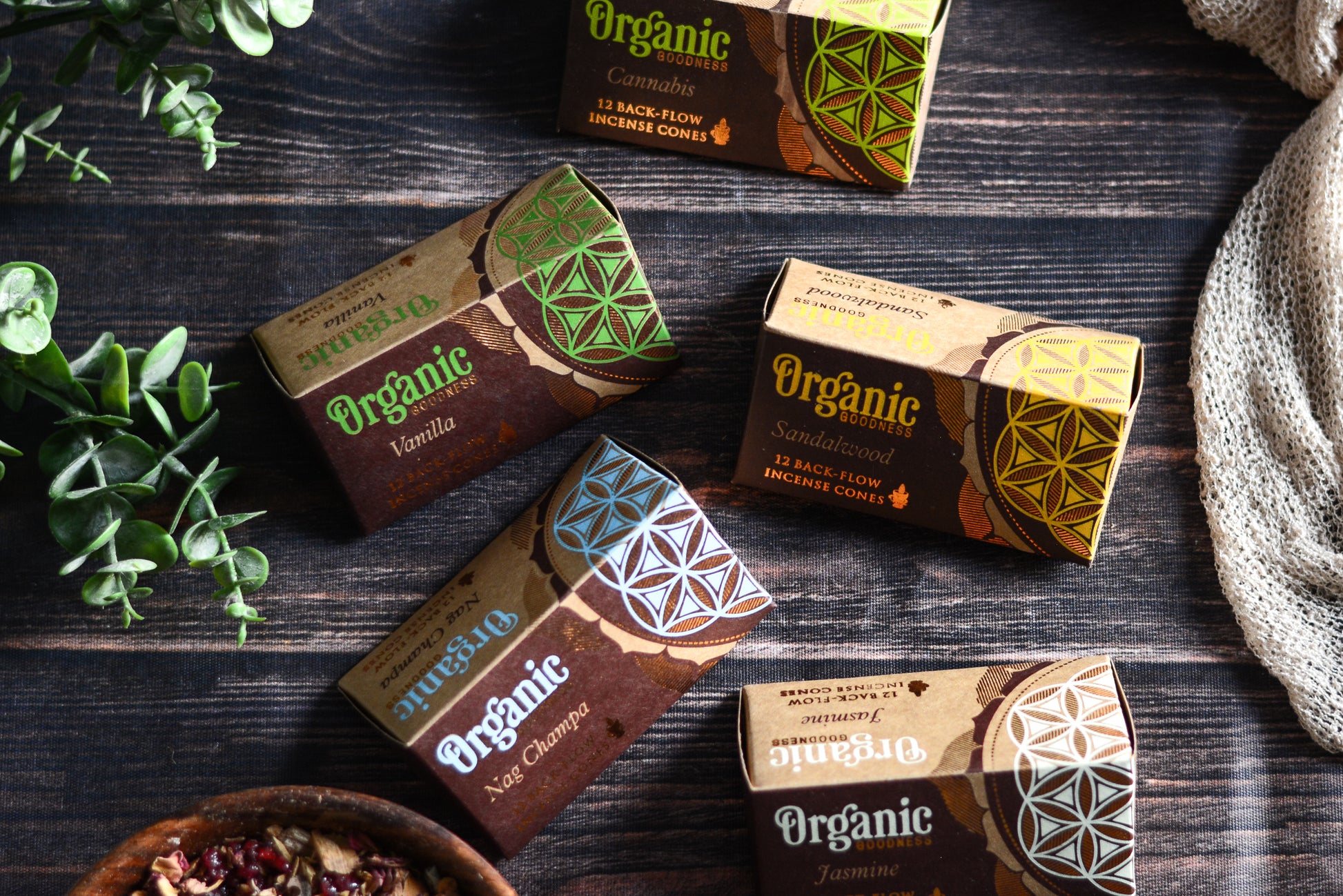Conos de Incienso Cascada (Backflow) Organic Goodness - Pack Mayorista