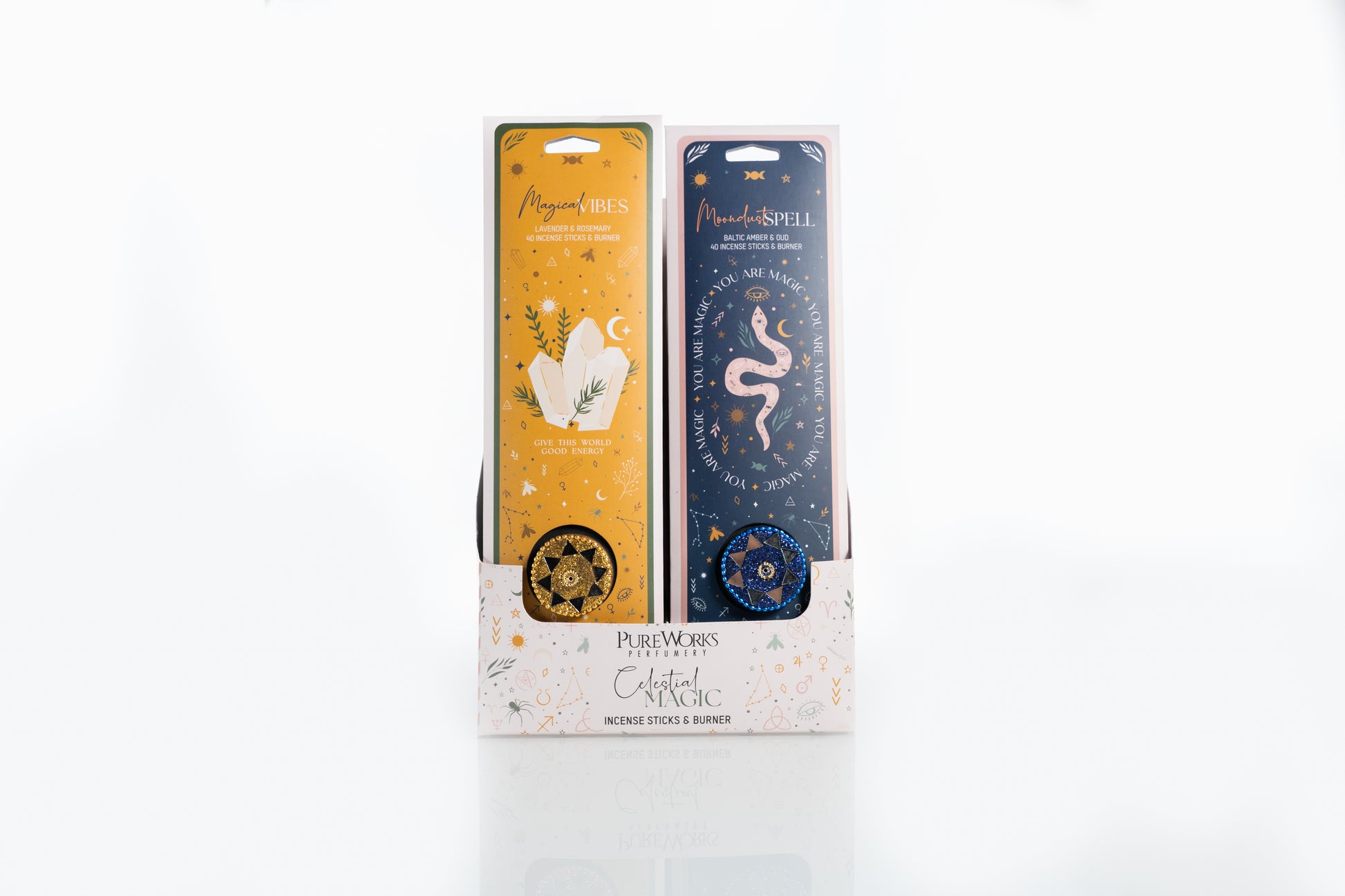 Incienso de Colores Celestial Magic + Quemador Espejo (Mirror Lac) - Kit Pouch