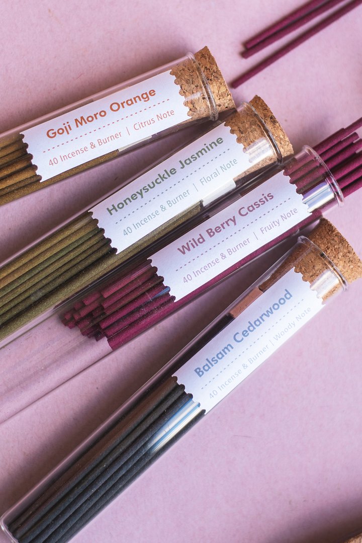 Set de Regalo Incienso Botánico Sin Bambú (4 Aromas) + Quemador Cerámica