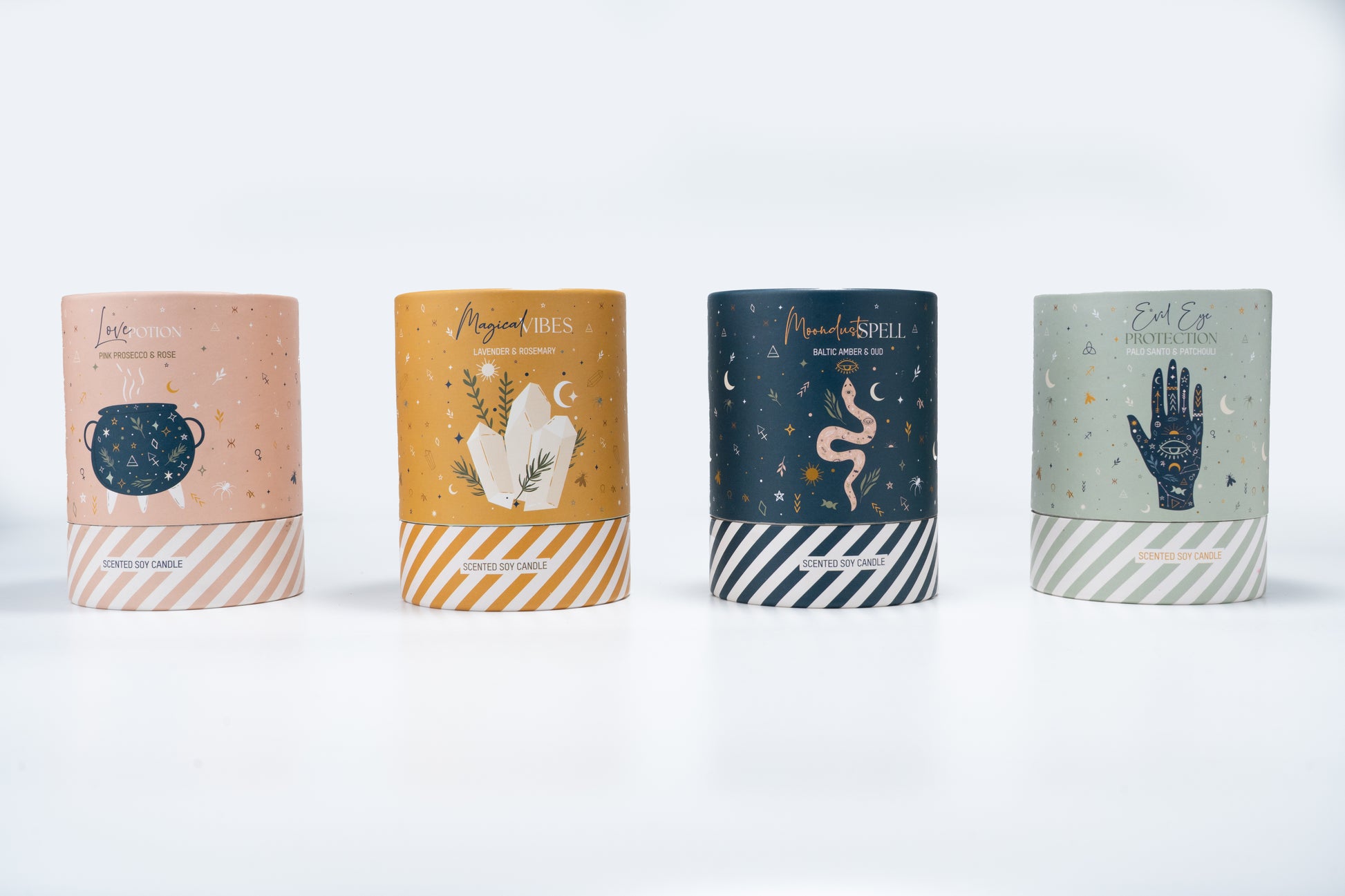Disponible en diferentes variantes conceptuales como Protección Ojo Turco – Evil Eye Protection, Poción de Amor – Love Potion, Vibras Mágicas – Magical Vibes y Polvo Lunar – Moondust Spell.